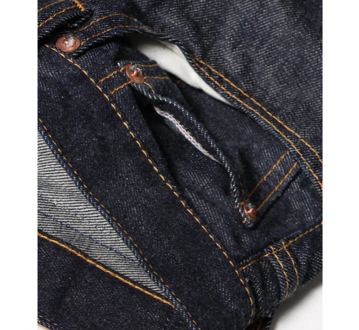 縫製糸には中心のスパン糸を綿糸で包んだ『コアヤーン』を使用。強さを持ったスパン糸と使用により色落ちする綿糸、両方の良さを兼ねそろえたジーンズを長く楽しむために最適な縫製糸で縫い上げました。