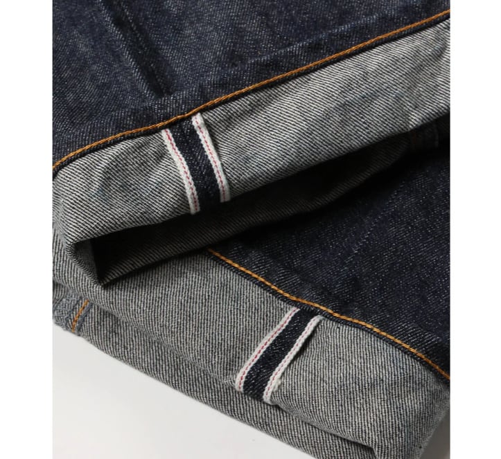 緯糸に茶綿を使用したセルビッチデニム『JUMBO DENIM』を使用した、ベーシックな王道ストレートシルエットのジーンズ。『ジーンズの原型』ともいえる基本のストレートシルエットをベースにヒップ周りを日本人の体型に合わせて補正。腰回りに自然なフィット感を持たせながらも、裾にかけて無骨に落ちるラインは、クラシックさと現代的な美しさを兼ね備えています。細部の仕様は隠しリベットや中盛りループなどヴィンテージディテールを踏襲しつつ、日常的に穿きやすいバランスに調整。長く付き合える“最良のベーシック”として、初めての一本にも、既にジーンズを愛する方のワードローブにもふさわしい仕上がりです。