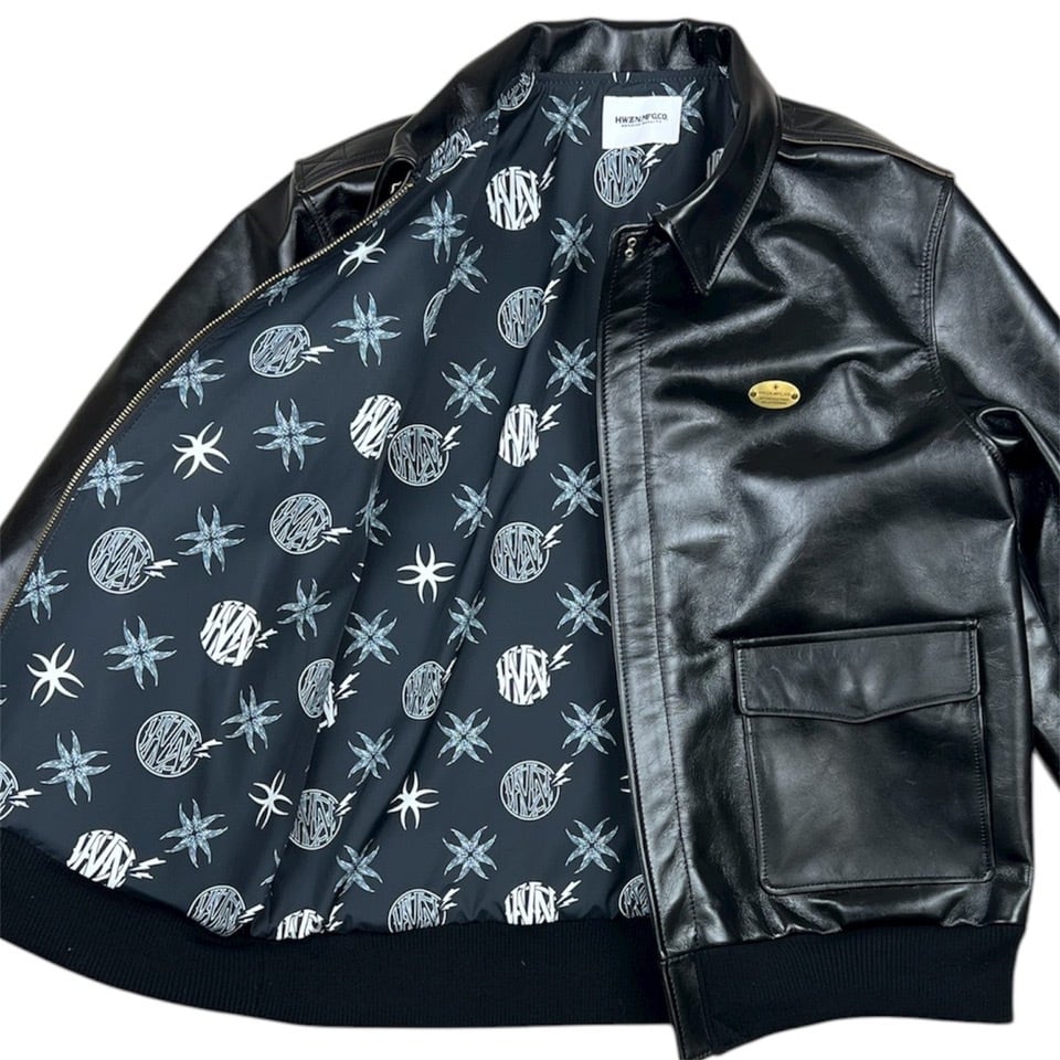 漆黒のブラックに染めた最高級のCOWHIDEが、熟練した職人の手によって1着1着丹念に縫い上げられ、身体に吸い付くような着心地となめらかな手触り、HWZNのMILITARY機能美としてのスタンダードとして制作された1943PRODUCTION MODEL.