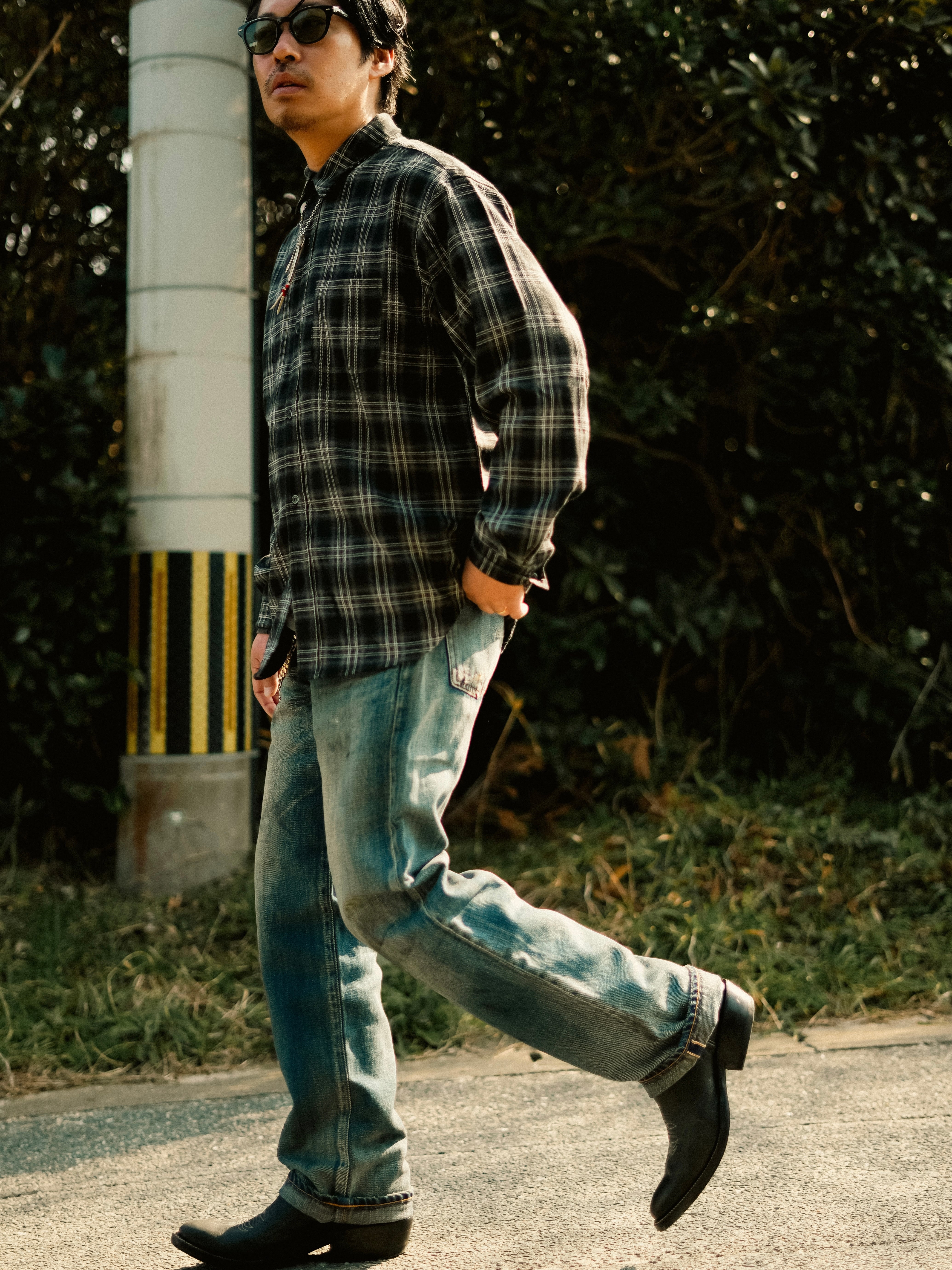 自然な風合いで穿き込んだ表情を加工職人の手により再現されたエイジング加工のジーンズ。熟練のデニム加工の技が光るリアルな色落ちを追求したスペシャルジーンズです。ヒゲやハチノスに加え、程よい汚れ加工や裾などのあたりが強い部分にはダメージ加工を施し、穿き込んだ歴史が垣間見えるほど真実味のあるエイジング加工ジーンズに仕上げました。ベーシックなストレートシルエットで合わせやすくスタイリングもしやすいジーンズです。