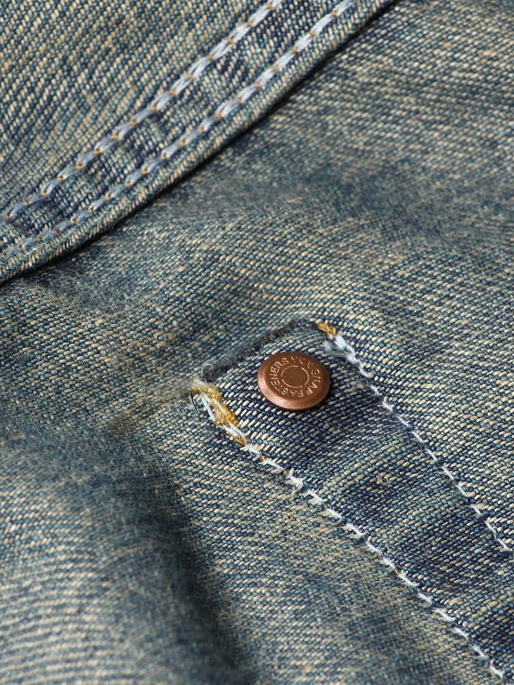 こちらのアイテムは1970年代に国内で初めてデニム専用の糸として開発した精紡機にて糸から拘ったオリジナルファブリックのため、50年前の糸を実現することができます。