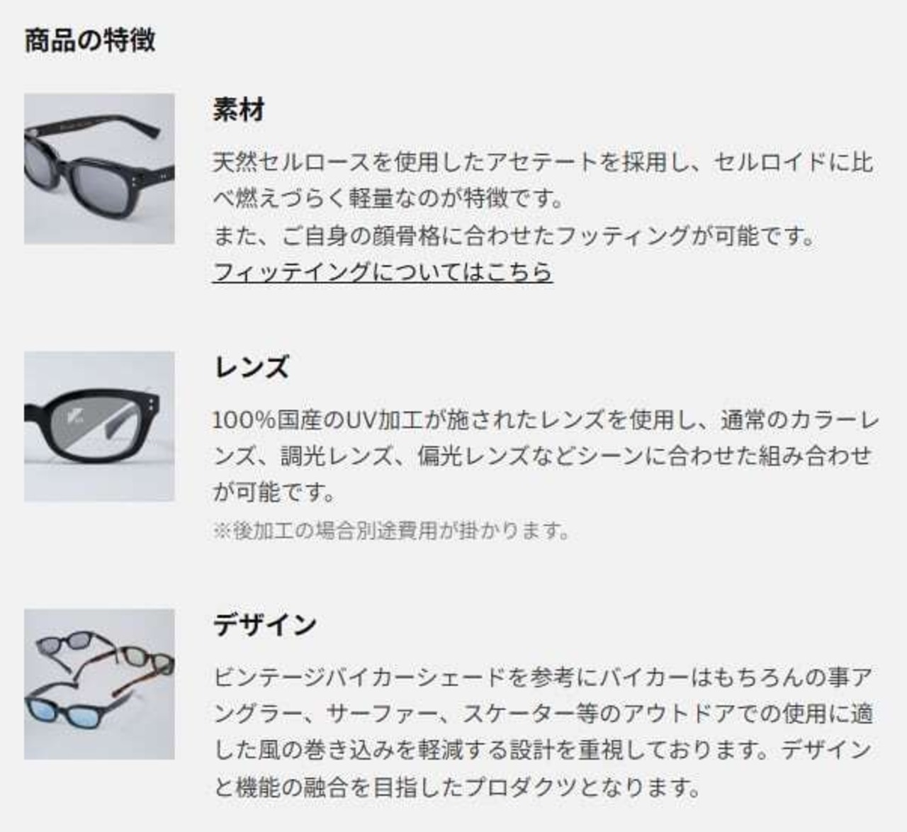 古いバイカームービーやビンテージシェードからインスパイアされたデザインを原型に、日本人の顔型に合うように改良しプロダクトされたシェードブランド。
